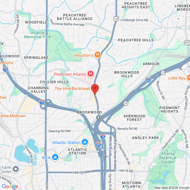While you can turn into our building parking lot from Peachtree St, it is easier to enter from DEERING RD. You will enter the parking lot for the Atlanta Masonic Library and continue past that building to the next. Park anywhere you like and enter through the back doors. Suite 110 is located past the elevators on the left.